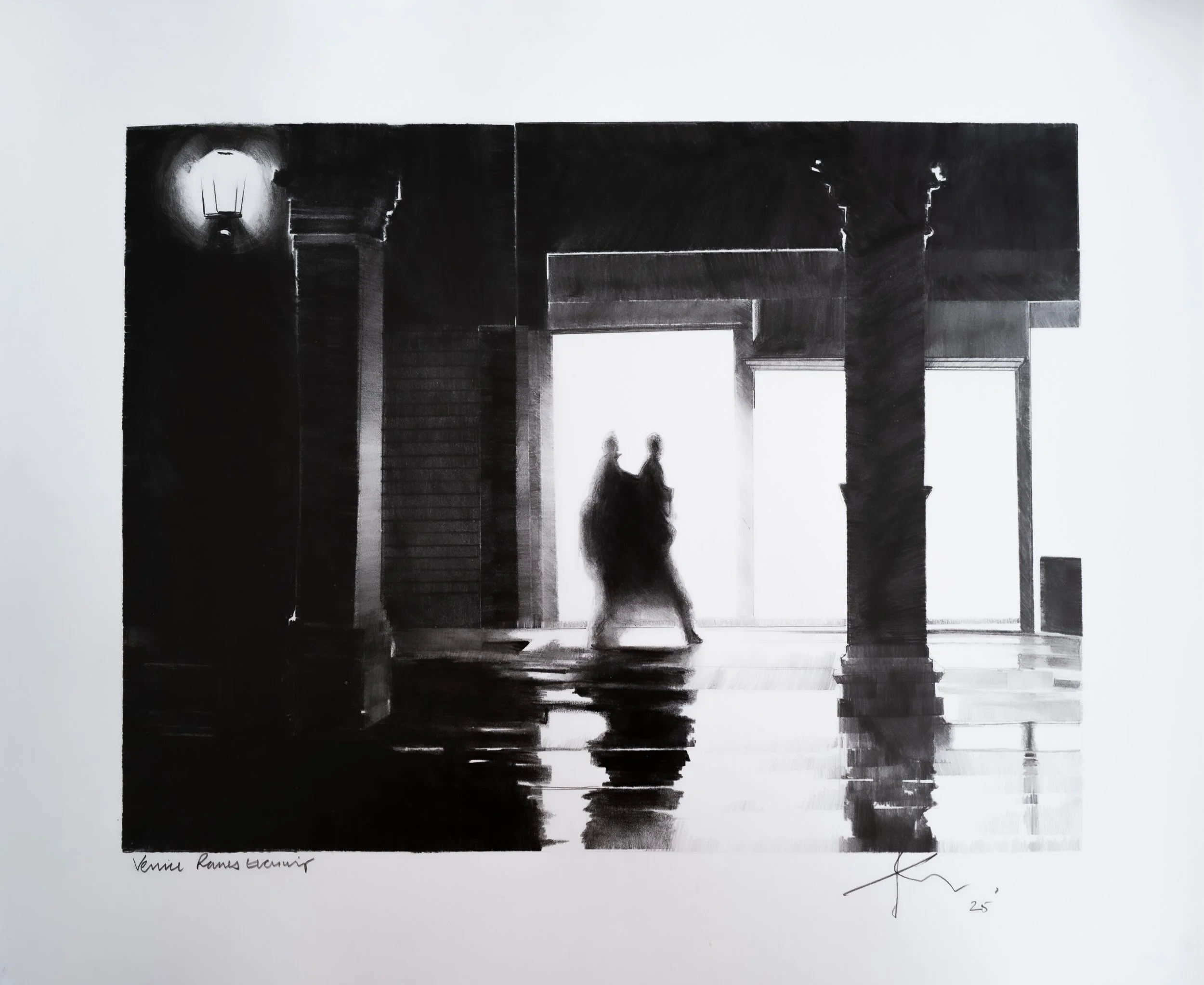 This collection of graphite drawings focuses on line, contrast, and the essential structure of place. Working in black and white allows form, proportion, and light to take precedence, stripping the image back to its fundamentals. Through careful observation, shadows define space and geometry guides the composition, creating a quiet sense of depth and stillness. The absence of colour sharpens attention to surface, texture, and mark-making. These works reflect an ongoing interest in how everyday environments can be distilled into their most direct visual language, inviting the viewer to engage slowly and consider the clarity found in restraint.